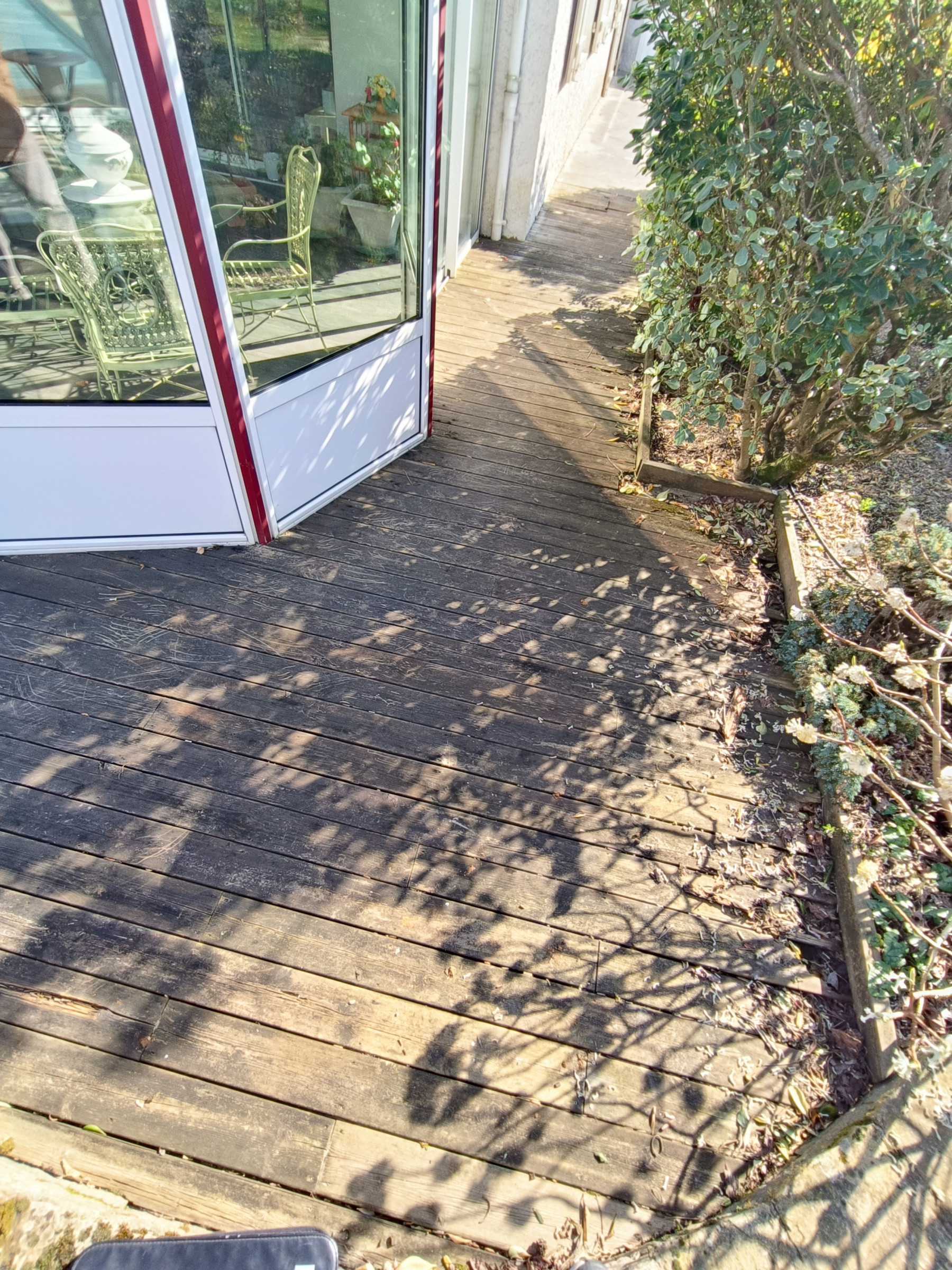 C’était le cas de cette terrasse dont le bois avait grisé.